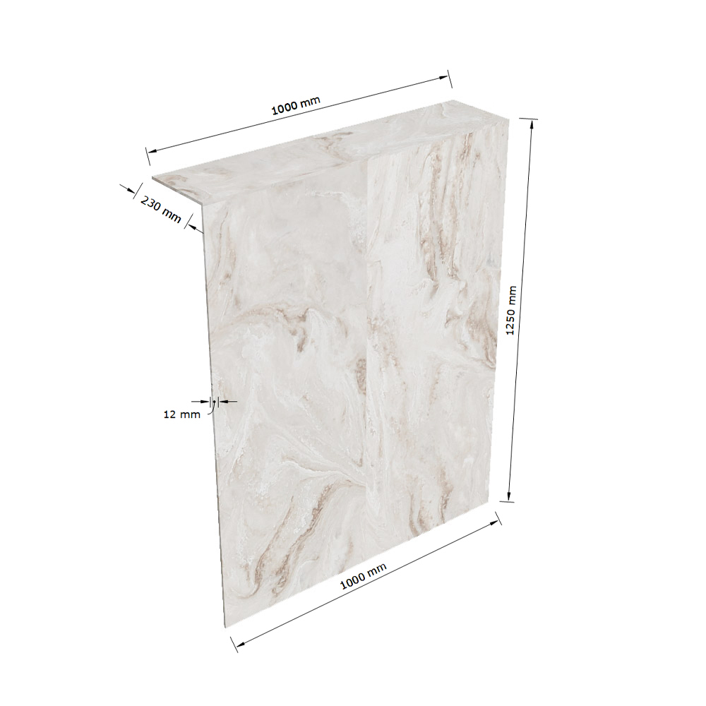 - Solide oppervlak achterwand van 100x125cm