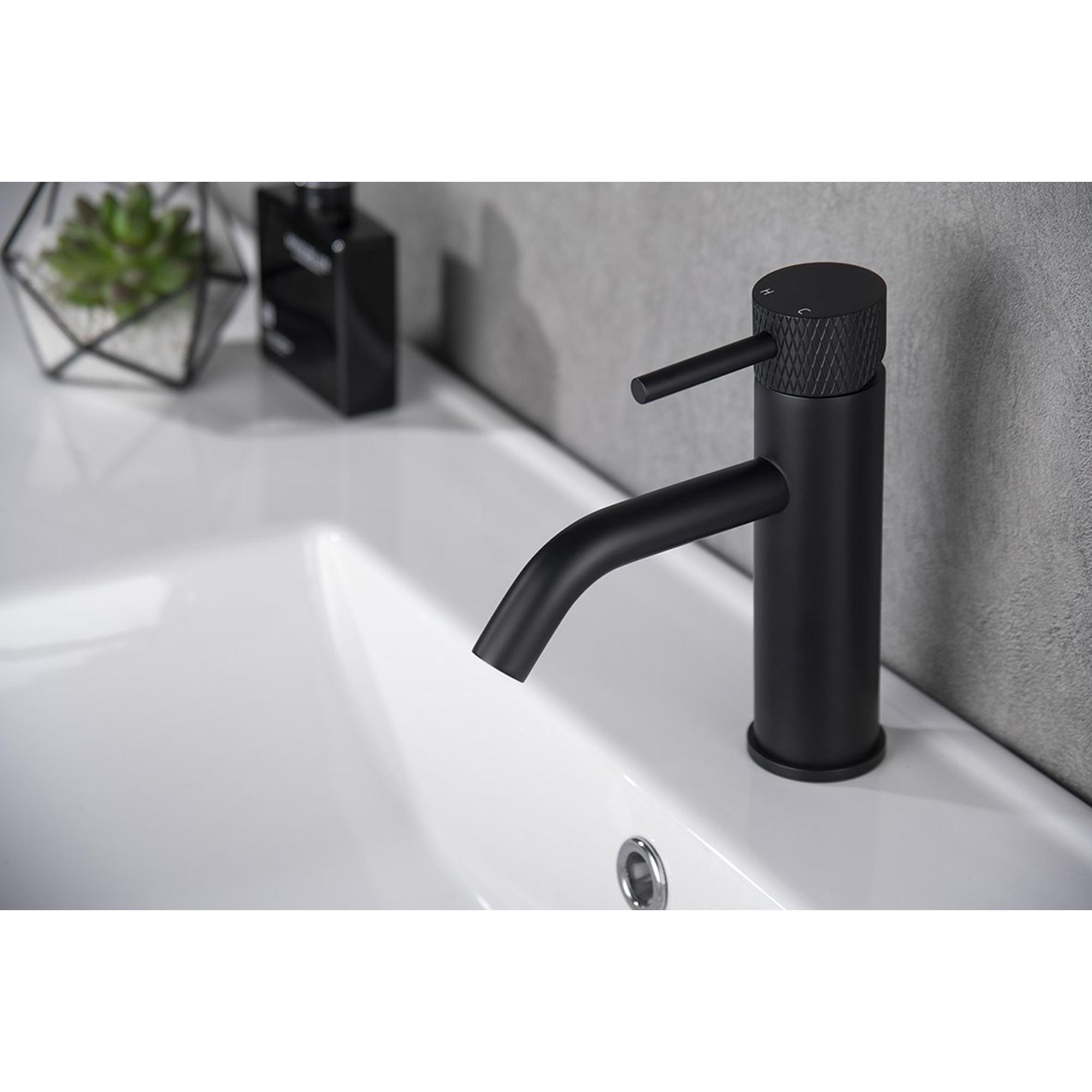 Wiesbaden Ribbd wastafelmengkraan mat zwart SHOWROOMMODEL