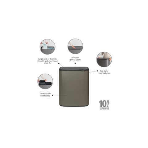 Brabantia Bo Touch Bin Afvalbak - 2x30 liter - 2 kunststof binnenemmers - platinum