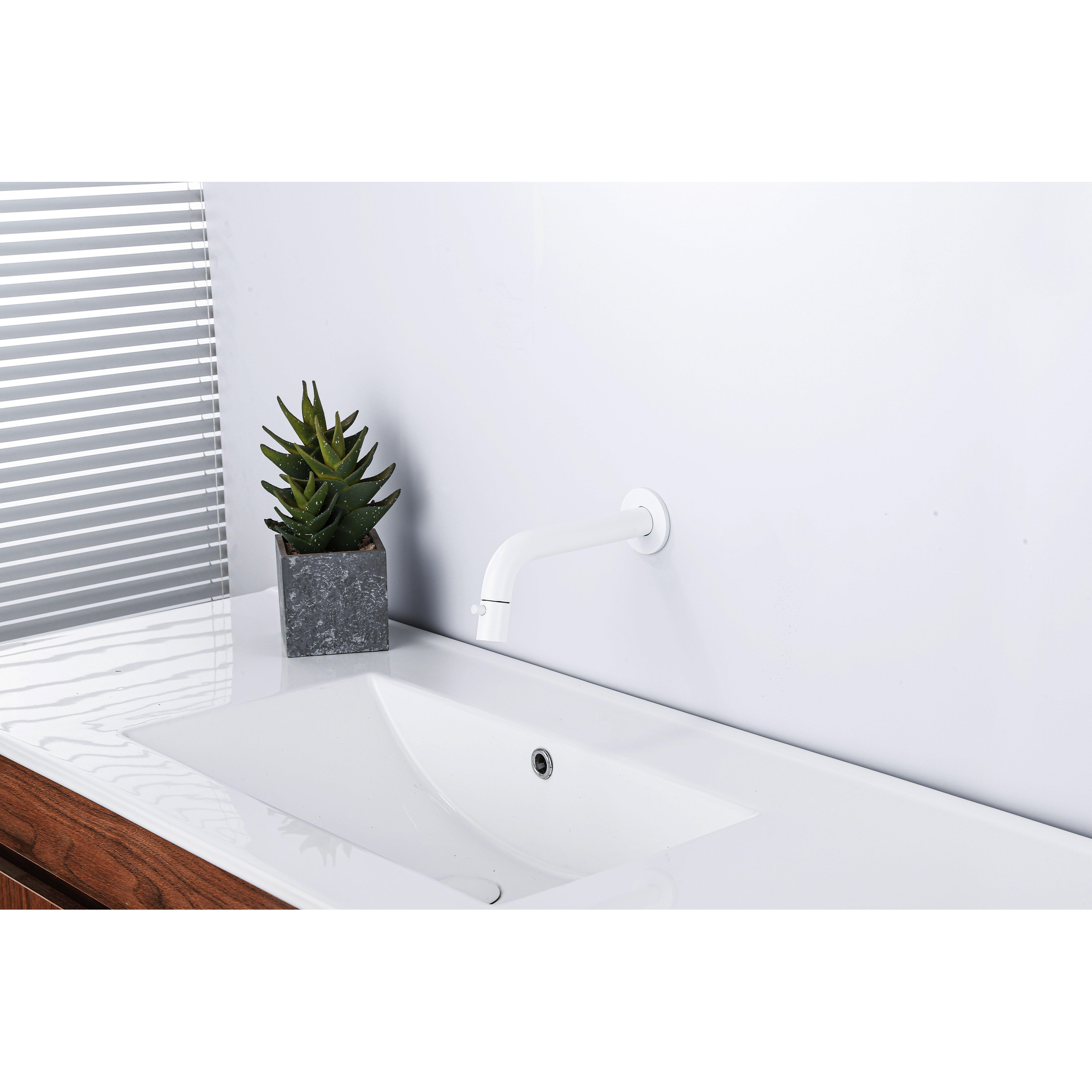 De mat witte afwerking geeft de kraan een frisse, moderne uitstraling die moeiteloos combineert met verschillende stijlen. Daarnaast is het materiaal duurzaam en eenvoudig schoon te houden, wat zorgt voor een lange levensduur en een blijvend mooie uitstraling.