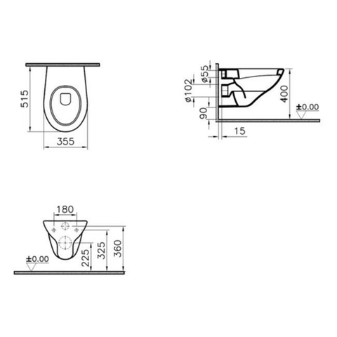 AfmetingenMet een breedte van 355 mm, een diepte van 515 mm, en een hoogte van 400 mm, is dit toilet compact en ruimtebesparend, ideaal voor kleinere badkamers.