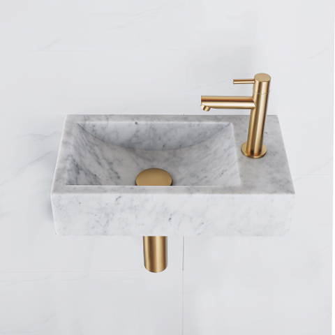 Fortifura Fuente fonteinset - 40x22 - 1 kraangat - rechts - marmer - fonteinkraan messing geborsteld - wit