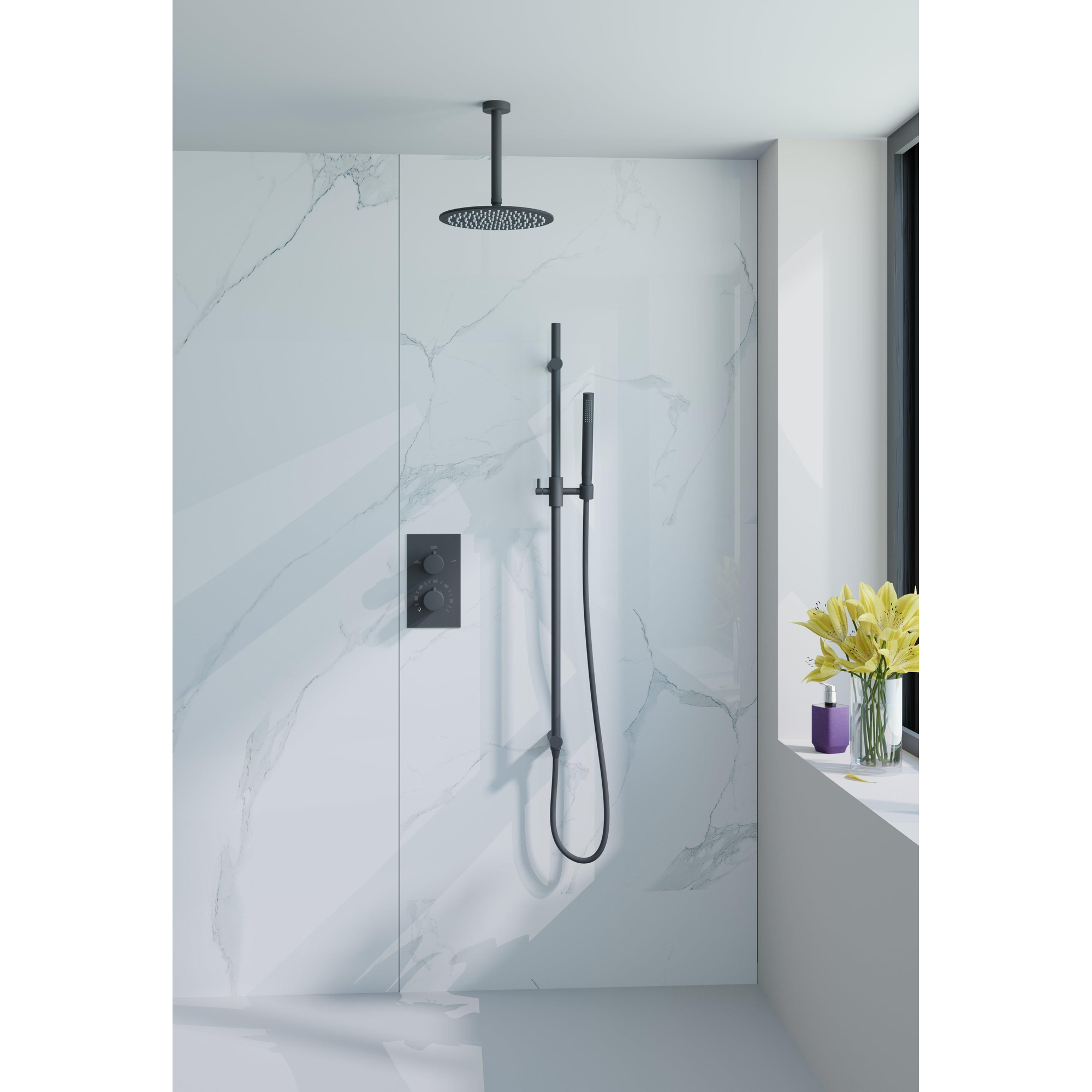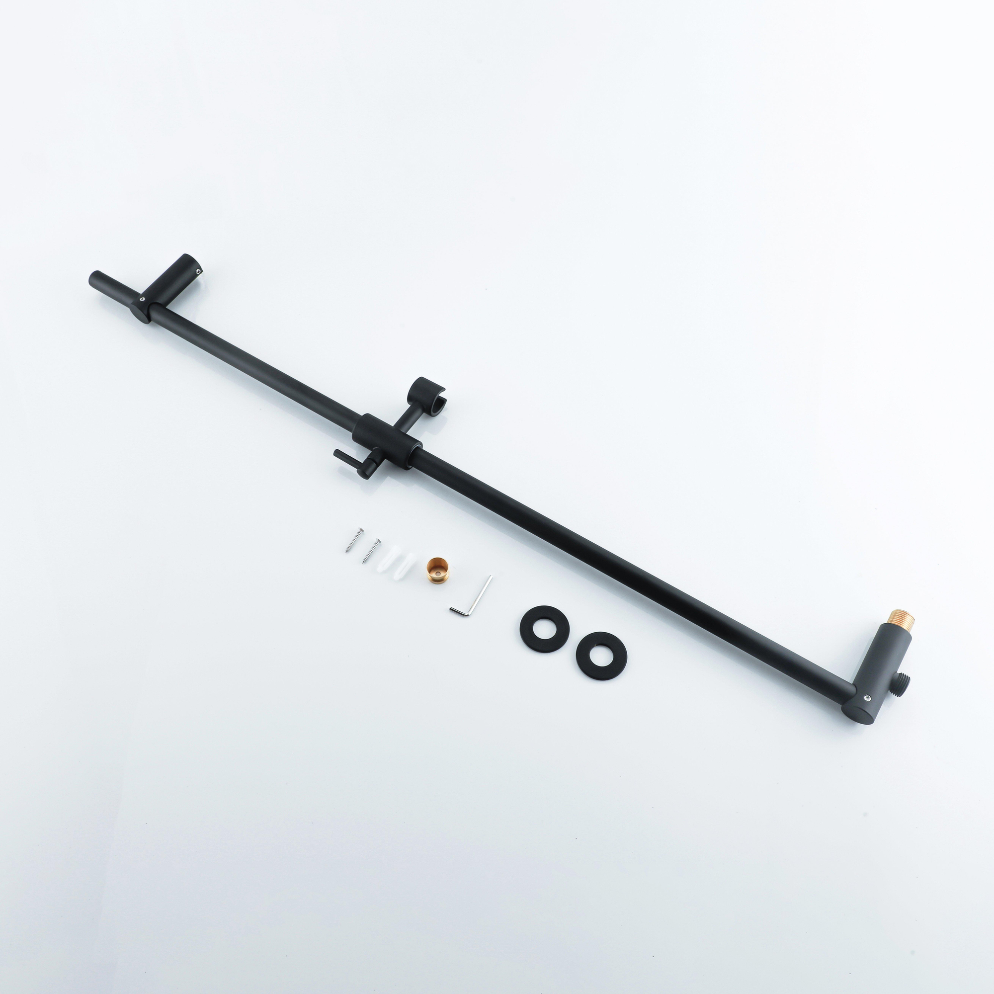 De matzwarte afwerking is niet alleen trendy, maar ook duurzaam en bestand tegen vocht. Dit zorgt ervoor dat de glijstang zijn stijlvolle uitstraling behoudt, zelfs bij dagelijks gebruik in de badkamer.