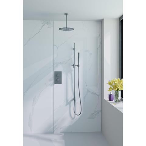 Geef je badkamer een moderne, stoere look met de Fortifura Calvi glijstang in gunmetal. Deze stijlvolle glijstang van 90 cm lang combineert functionaliteit met een robuuste uitstraling die perfect past in industriële of eigentijdse badkamerontwerpen. De gunmetal afwerking geeft een unieke, donkere metallic uitstraling die een krachtig accent vormt en prachtig contrasteert met lichte en neutrale badkamerkleuren.Met een geïntegreerde wandaansluitbocht biedt deze glijstang een strak, opgeruimd design zonder zichtbare slangen of koppelingen. Dit zorgt niet alleen voor een minimalistische uitstraling, maar ook voor een veilige en betrouwbare aansluiting in de douche.