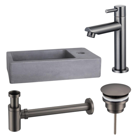 Fortifura Fuente fonteinset - 40x22x8cm - 1 kraangat - fonteinkraan gunmetal - beton