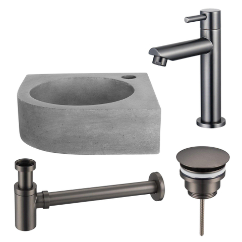 Fortifura Fuente fonteinset - 31.5x31.5x10cm - 1 kraangat - hoek - fonteinkraan gunmetal - beton