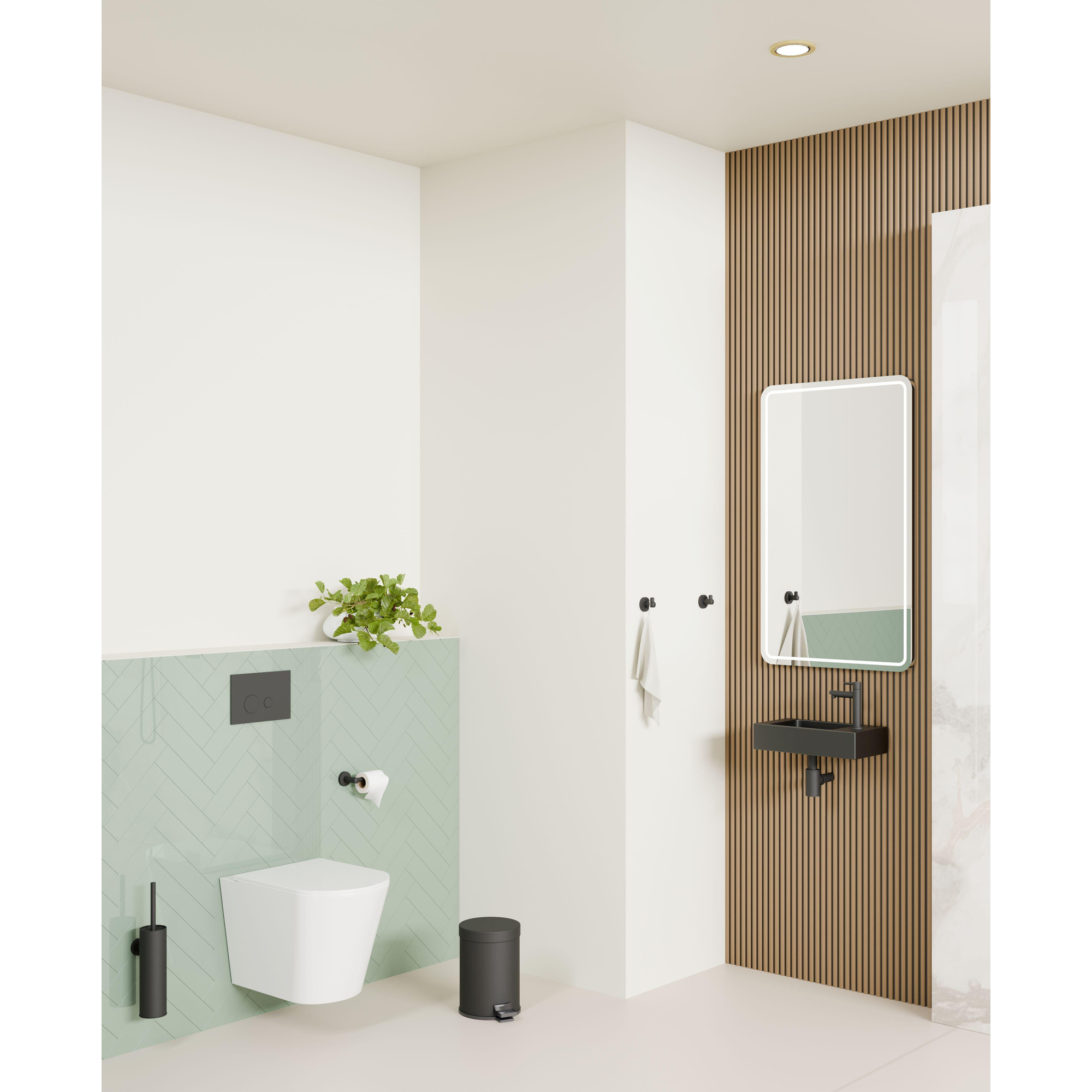 De combinatie van natuursteen en een zwarte matte fonteinkraan geeft de Fortifura Fuente fonteinset een moderne uitstraling. Deze eigentijdse ontwerpdetails maken dit fonteinset perfect voor badkamers met een hedendaagse inrichting. Het strakke design en de zwarte accenten zorgen voor een trendy en verfijnde uitstraling.