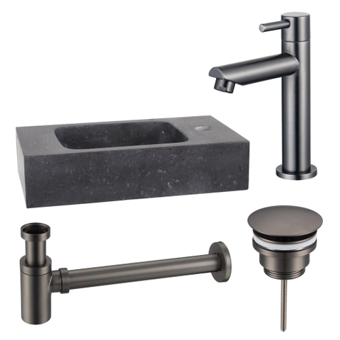 Fortifura Fuente fonteinset - 40x22x9cm - 1 kraangat - natuursteen - fonteinkraan gunmetal - zwart