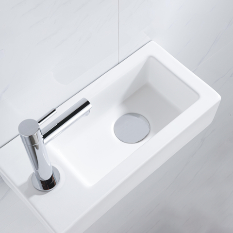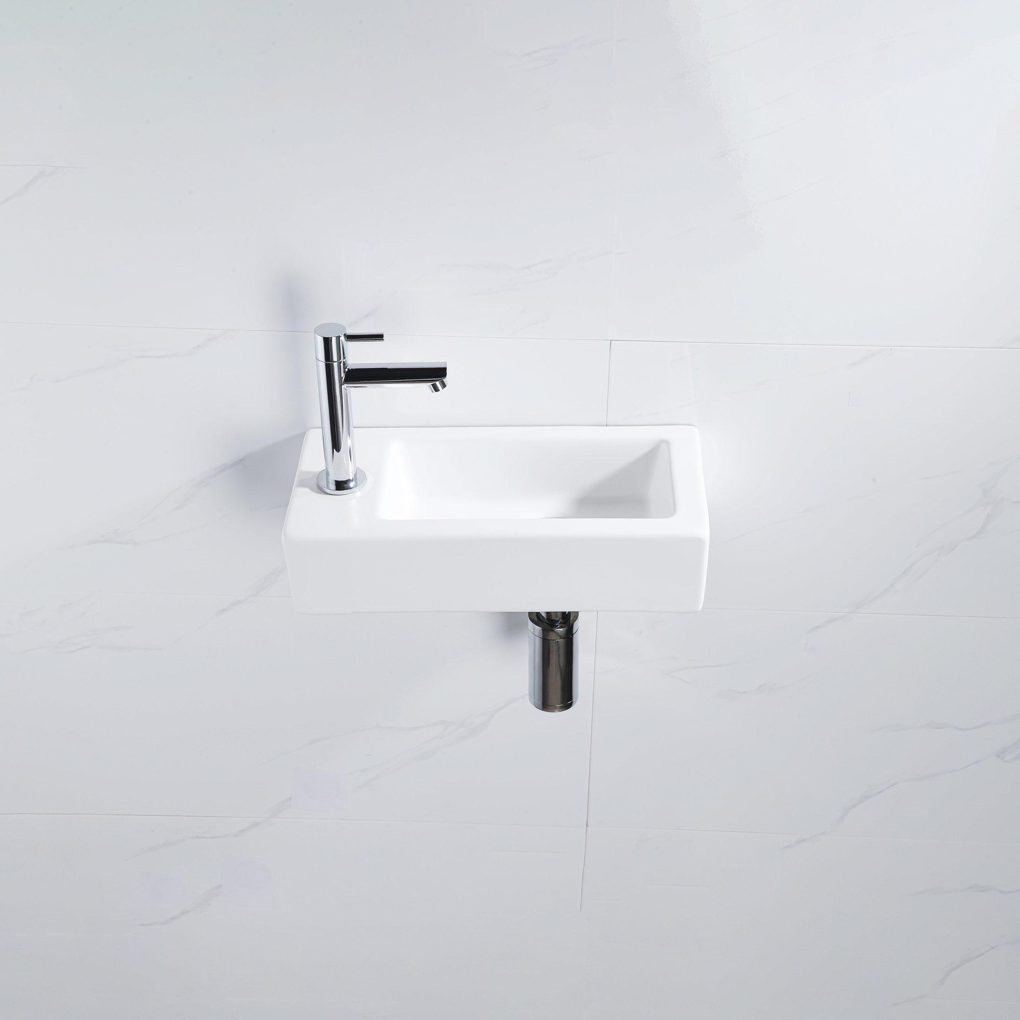 Fortifura Fuente fonteinset - 36x18.5x9cm - 1 kraangat - solid surface - fonteinkraan chroom - mat wit