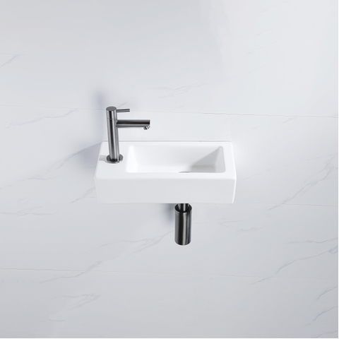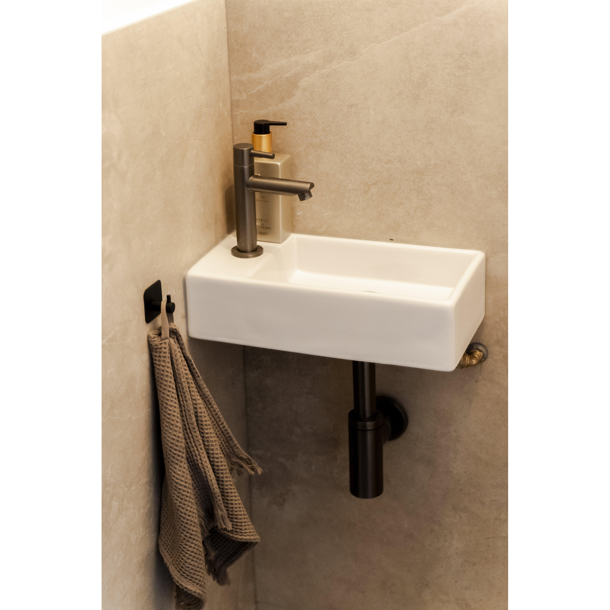 Fortifura Fuente fonteinset - 36x18.5x9cm - 1 kraangat - solid surface - fonteinkraan gunmetal - mat wit
