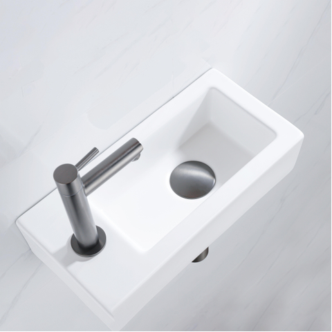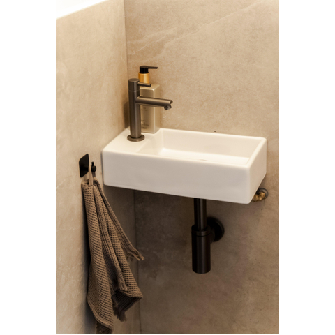 De Fortifura Fuente fonteinset straalt een tijdloze elegantie uit die elke badkamer transformeert tot een stijlvolle ruimte. Het slanke ontwerp en de verfijnde afwerking maken deze fonteinset tot een ware blikvanger. De fonteinkraan gunmetal voegt een vleugje glamour toe, terwijl het matte witte solid surface materiaal zorgt voor een subtiele en elegante uitstraling. Met deze fonteinset voeg je moeiteloos een vleugje klasse toe aan je badkamerinterieur.