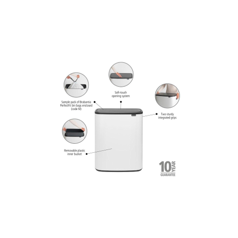 Brabantia Bo Touch Bin Afvalemmer - 60 liter - kunststof binnenemmer - wit