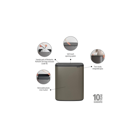 Brabantia Bo Touch Bin Afvalemmer - 60 liter - kunststof binnenemmer - platinum