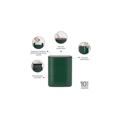 Brabantia Bo Touch Bin Afvalemmer - 60 liter - kunststof binnenemmer - pine green