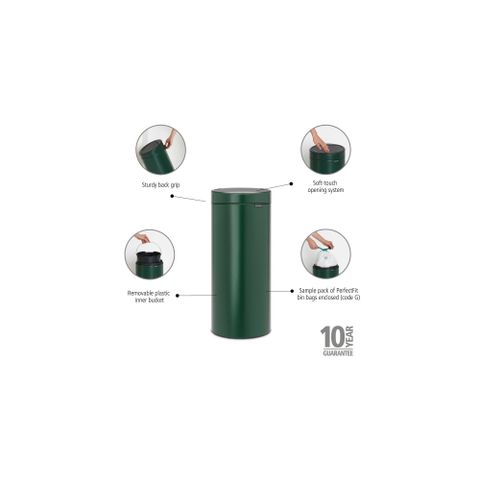 Brabantia Touch Bin Afvalemmer - 30 liter - kunststof binnenemmer - pine green