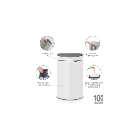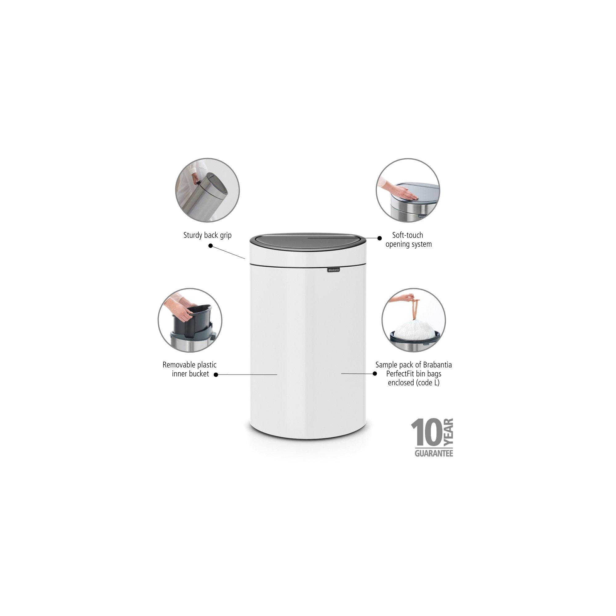 Brabantia Touch Bin Afvalemmer - 40 liter - kunststof binnenemmer - wit