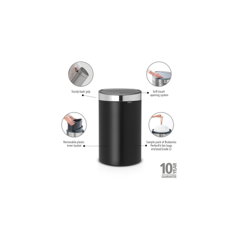Brabantia Touch Bin Afvalemmer - 40 liter - kunststof binnenemmer - matt black - matt steel fingerprint proof