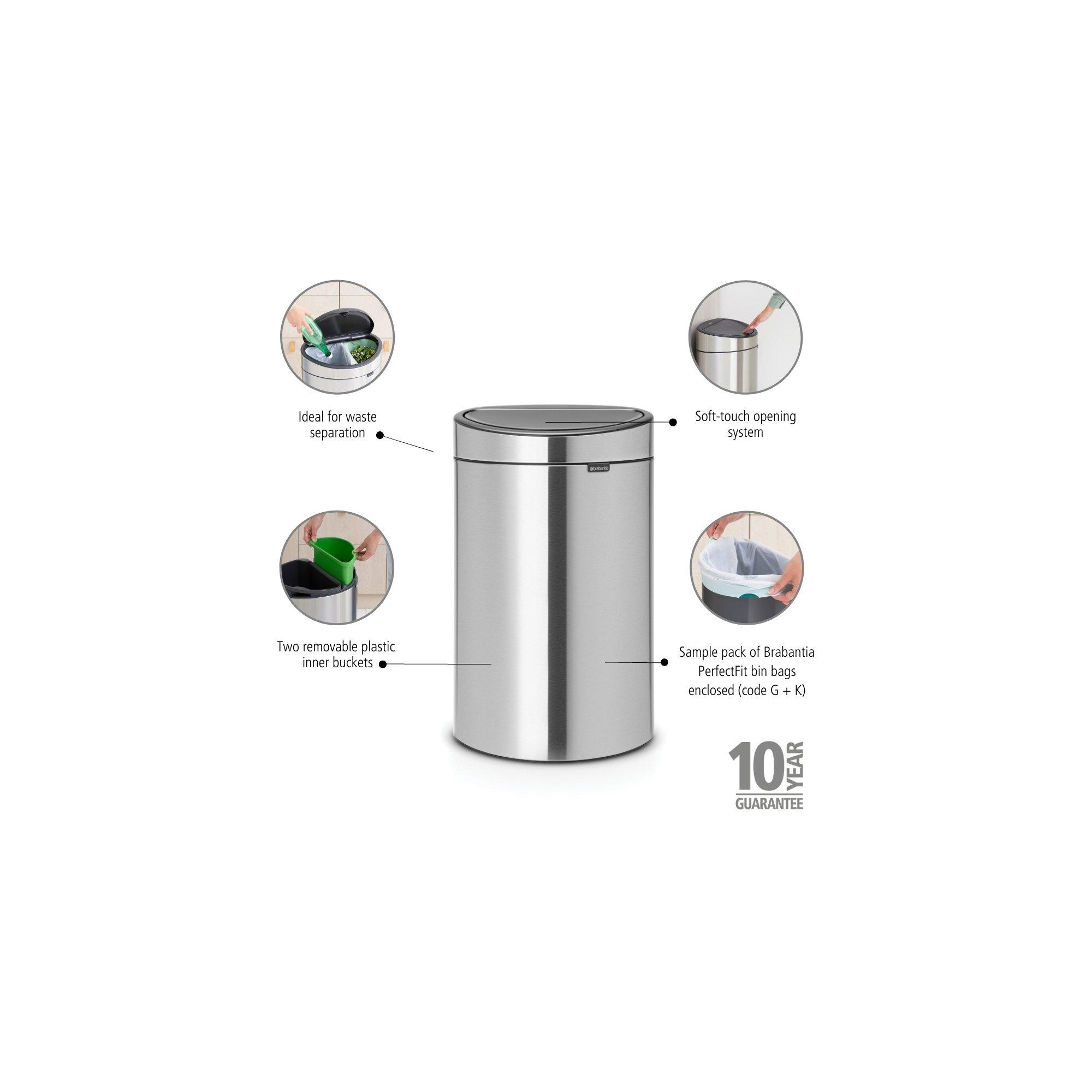 Brabantia Touch Bin Afvalemmer - 10+23 liter - 2 kunststof binnenemmers - matt steel