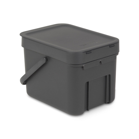 Brabantia Sort & Go Afvalemmer - 6 liter - hengsel - met beugel - donker grijs