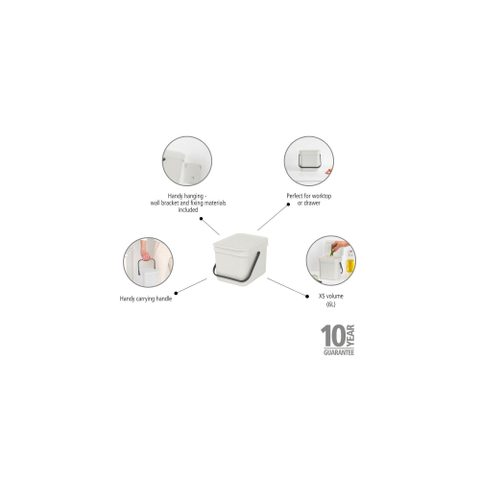 Brabantia Sort & Go Afvalemmer - 6 liter - hengsel - met beugel - light grey