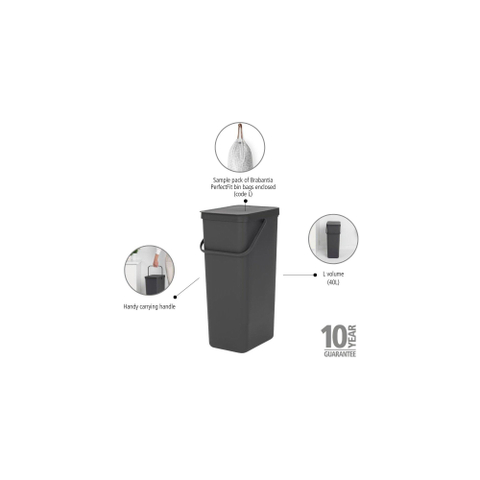 Brabantia Sort & Go Afvalemmer - 40 liter - hengsel - donker grijs