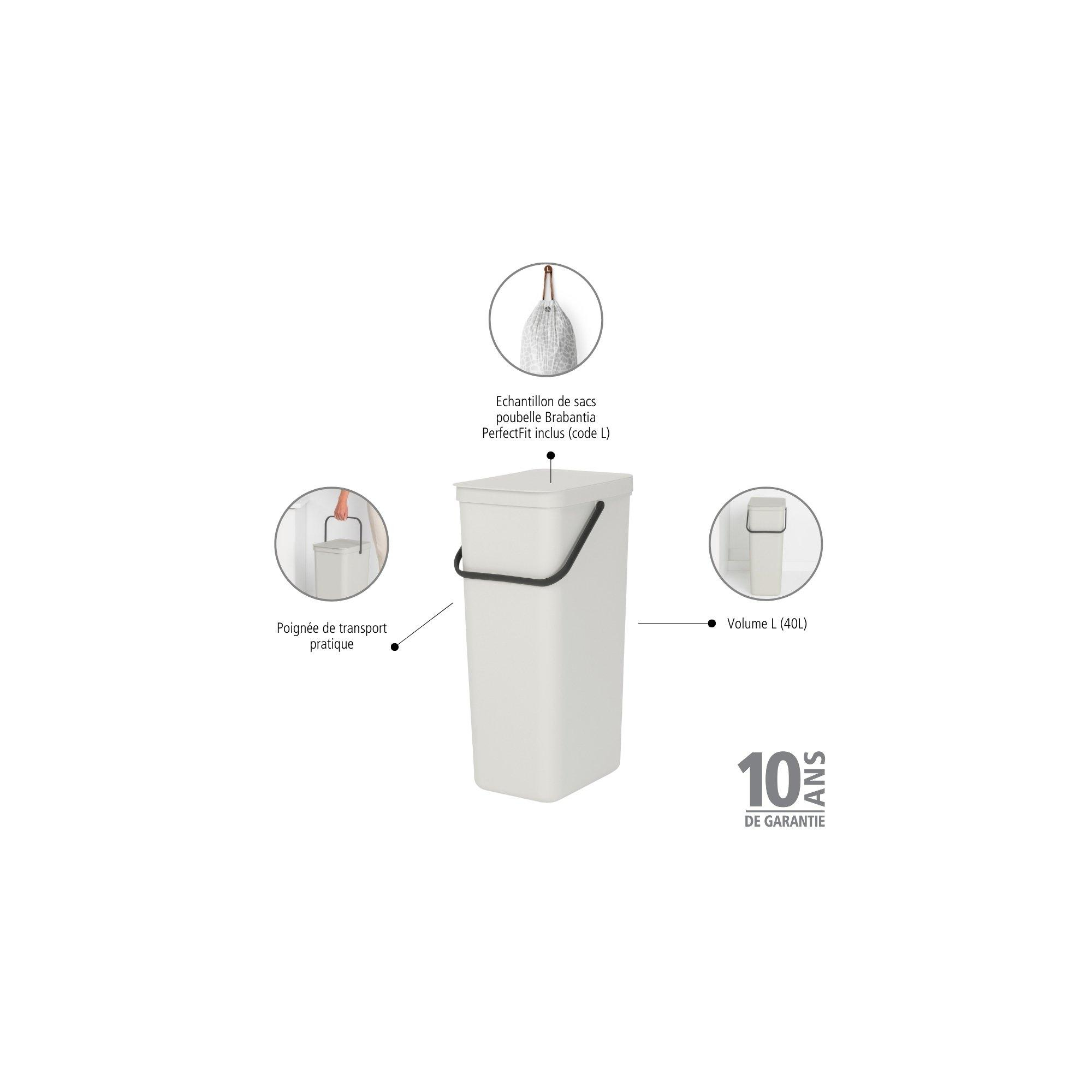 Brabantia Sort & Go Afvalemmer - 40 liter - hengsel - light grey
