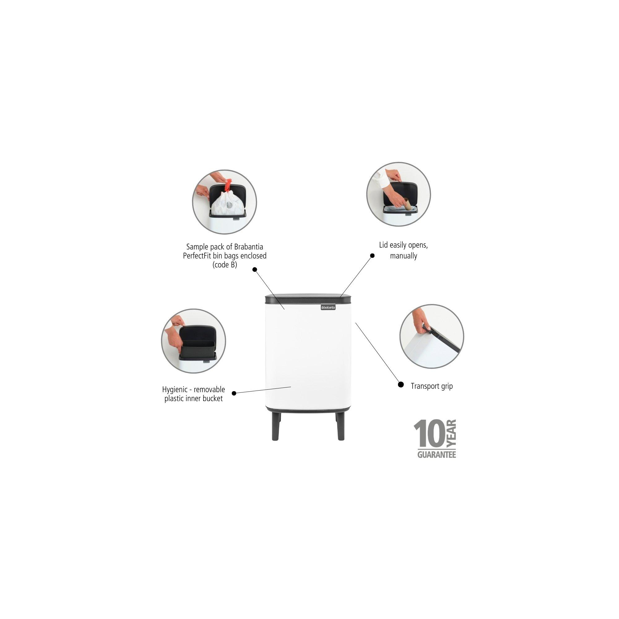 Brabantia Bo Hi Afvalemmer - 7 liter - kunststof binnenemmer - wit