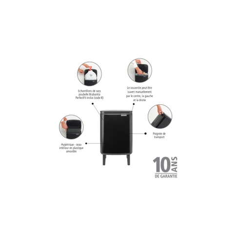 Brabantia Bo Hi Afvalemmer - 7 liter - kunststof binnenemmer - matt black