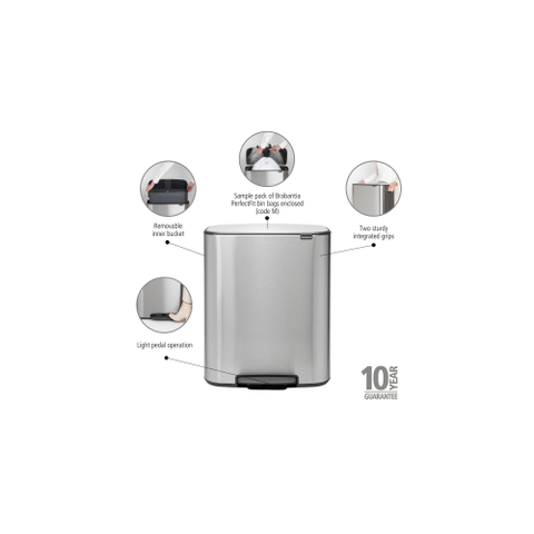 Brabantia Bo Pedaalemmer - 60 liter - kunststof binnenemmer - matt steel fingerprint proof