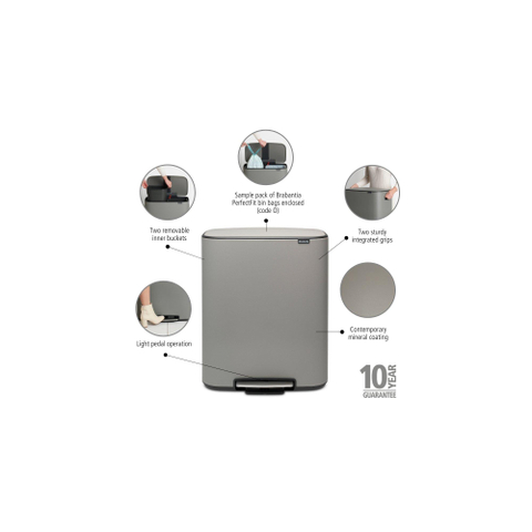 Brabantia Bo Pedaalemmer - 2x30 liter - 2 kunststof binnenemmers - mineral concrete grey