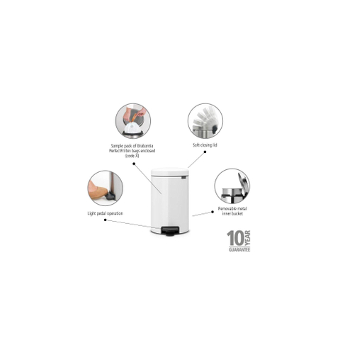 Brabantia NewIcon Pedaalemmer - 12 liter - metalen binnenemmer - wit