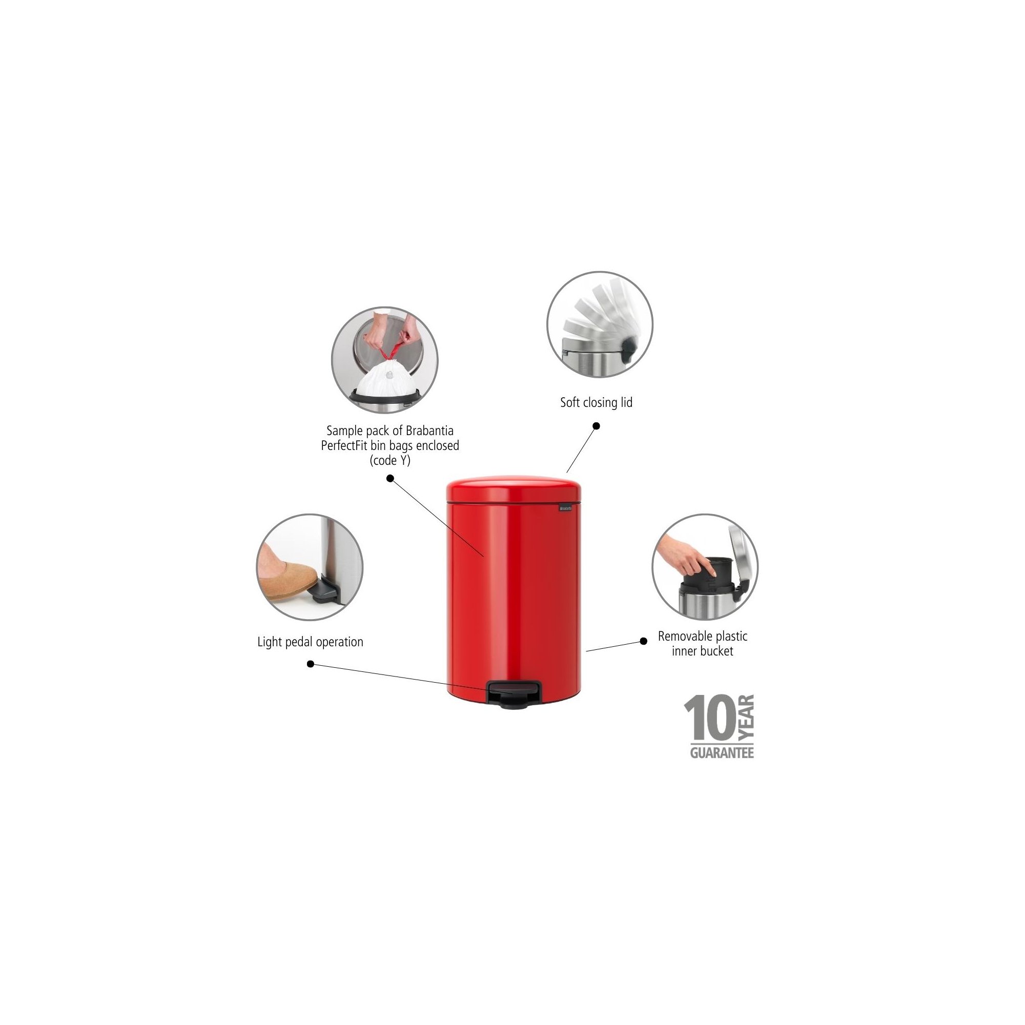 Brabantia NewIcon Pedaalemmer - 20 liter - kunststof binnenemmer - passion red