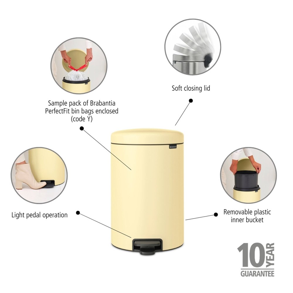 Brabantia NewIcon Pedaalemmer - 20 liter - kunststof binnenemmer - mellow yellow