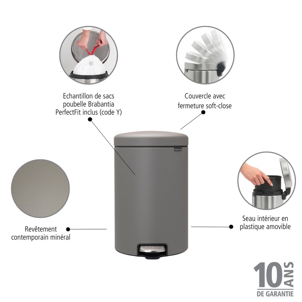 Brabantia NewIcon Pedaalemmer - 20 liter - kunststof binnenemmer - mineral concrete grey