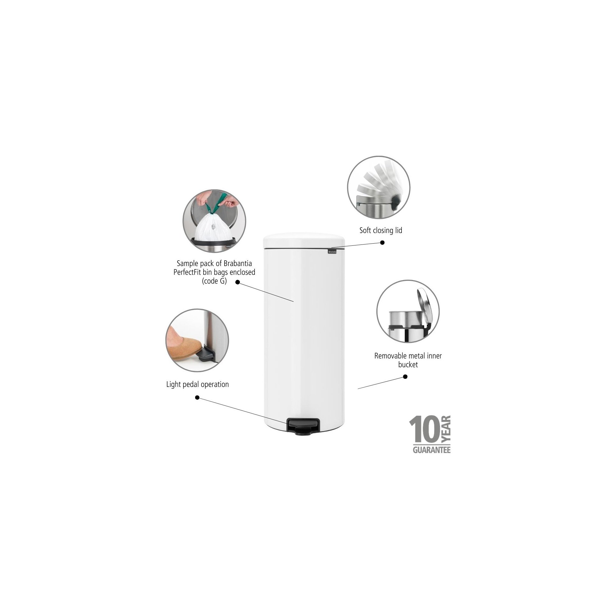 Brabantia NewIcon Pedaalemmer - 30 liter - metalen binnenemmer - wit