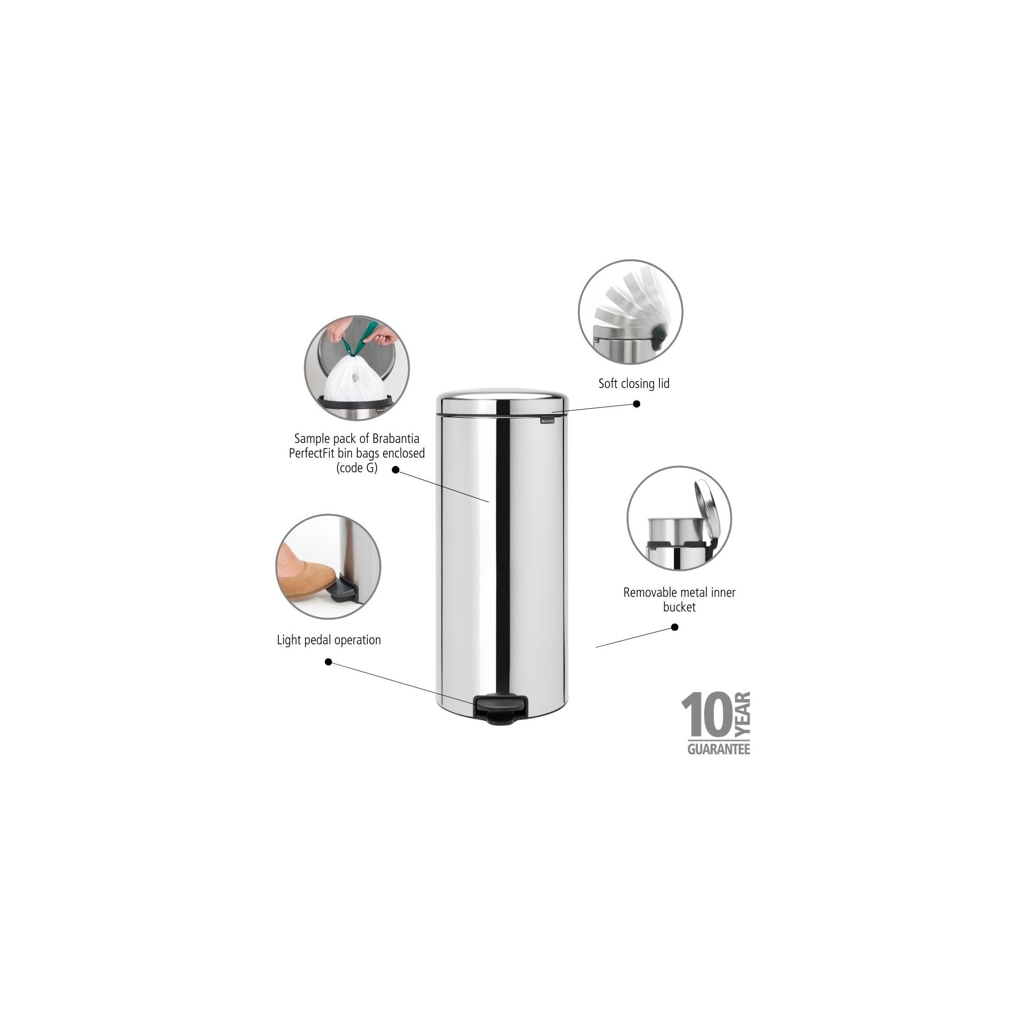 Brabantia NewIcon Pedaalemmer - 30 liter - metalen binnenemmer - brilliant steel