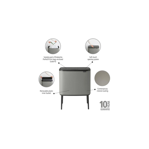 Brabantia Bo Touch Bin Afvalemmer - 36 liter - kunststof binnenemmer - mineral concrete grey