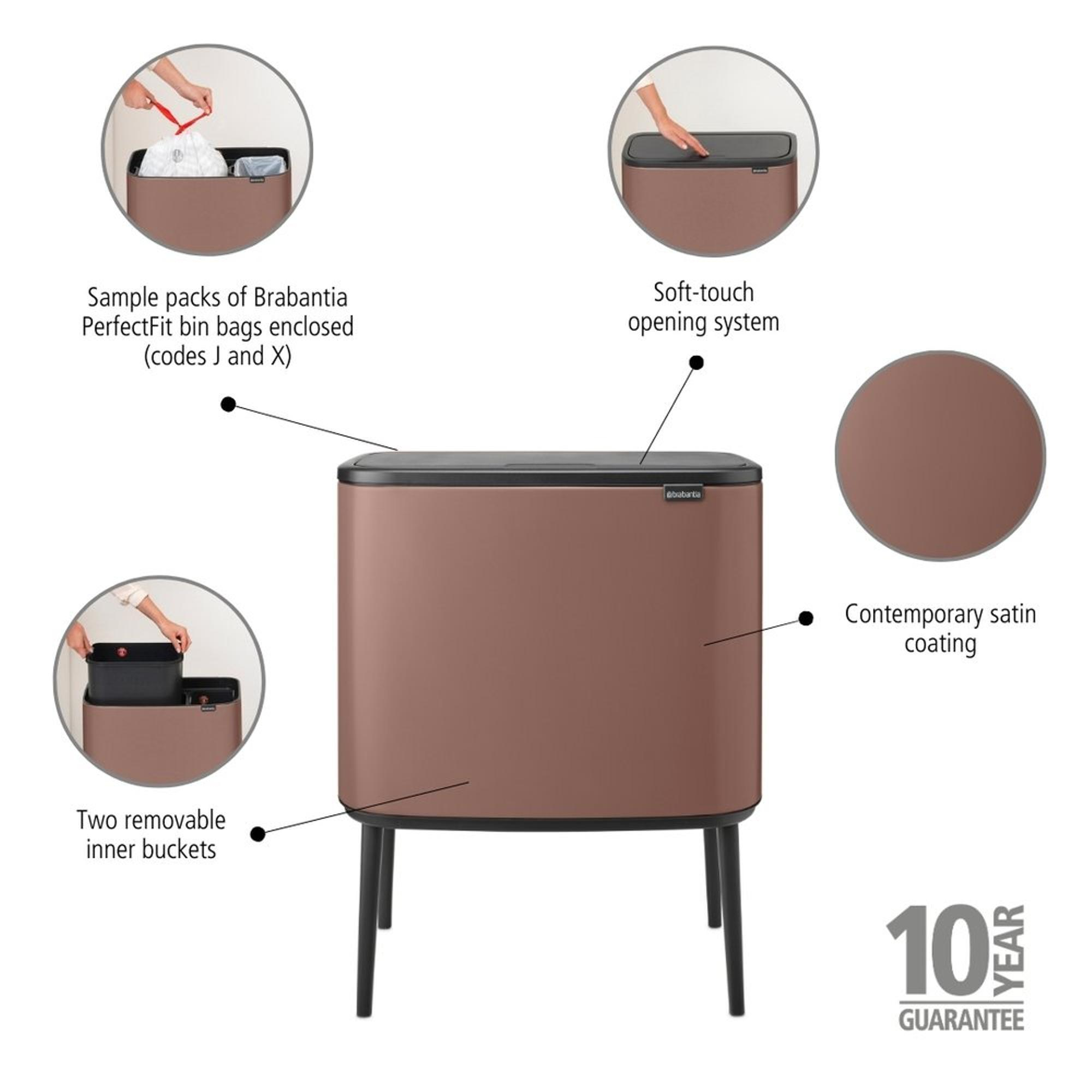 Brabantia Bo Touch Bin Afvalemmer - 11+23 liter - 2 kunststof binnenemmers - satin taupe