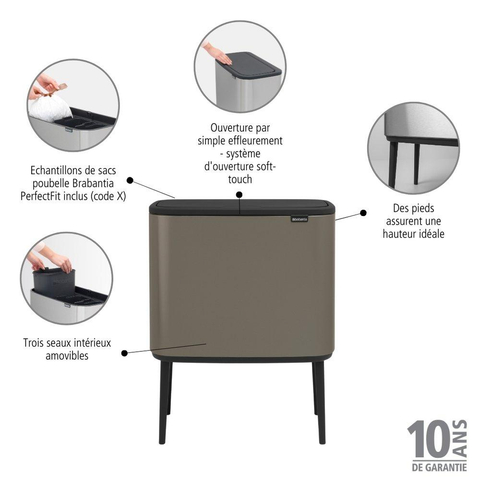 Brabantia Bo Touch Bin Afvalemmer - 3x11 liter - 3 kunststof binnenemmers - platinum