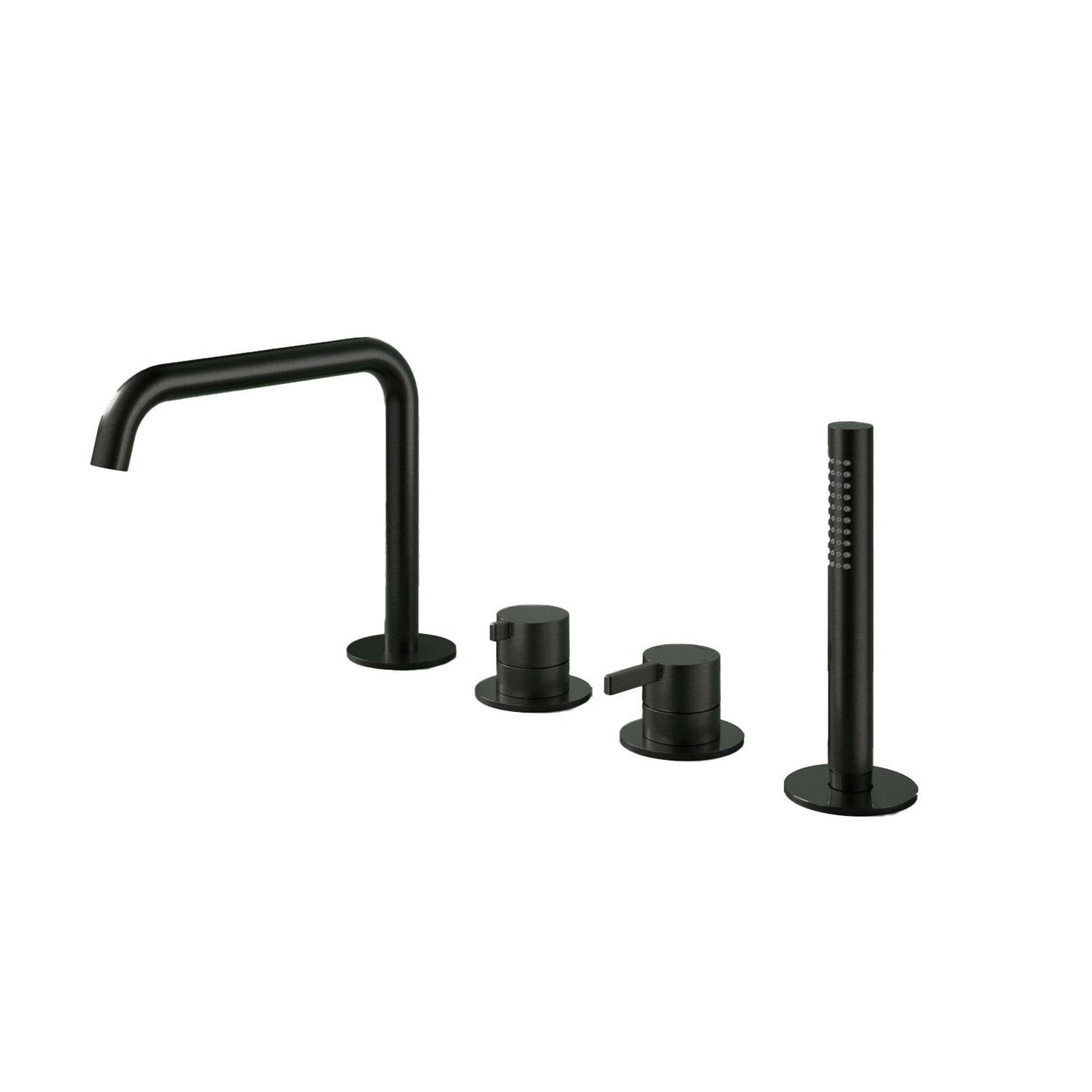 Hotbath Ace Badmengkraan - Badrandcombinatie - éénhendel - 2-weg omstel - handdouche - uitloop - Mat Zwart PVD