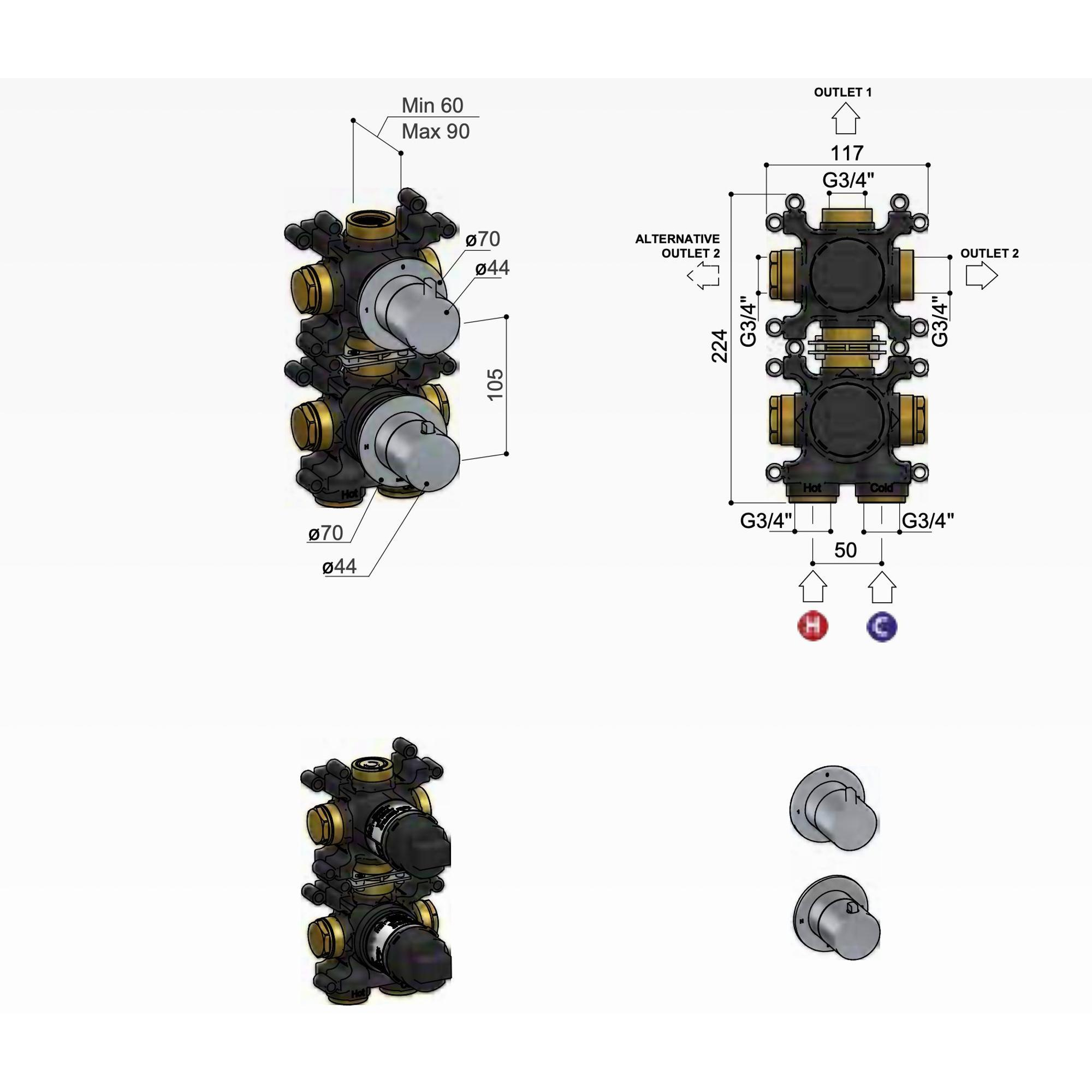 Hotbath inbouwdeel - voor inbouwthermostaat met 2-weg stop omstel is een prachtig en functioneel onderdeel dat perfect past bij een moderne badkamer. Met zijn strakke ontwerp en hoogwaardige materialen, voegt dit inbouwdeel een vleugje elegantie toe aan elke doucheruimte. Het is ontworpen met oog voor detail en vakmanschap, waardoor het niet alleen een essentieel onderdeel is voor je badkamer, maar ook een stijlvolle toevoeging aan je interieur.