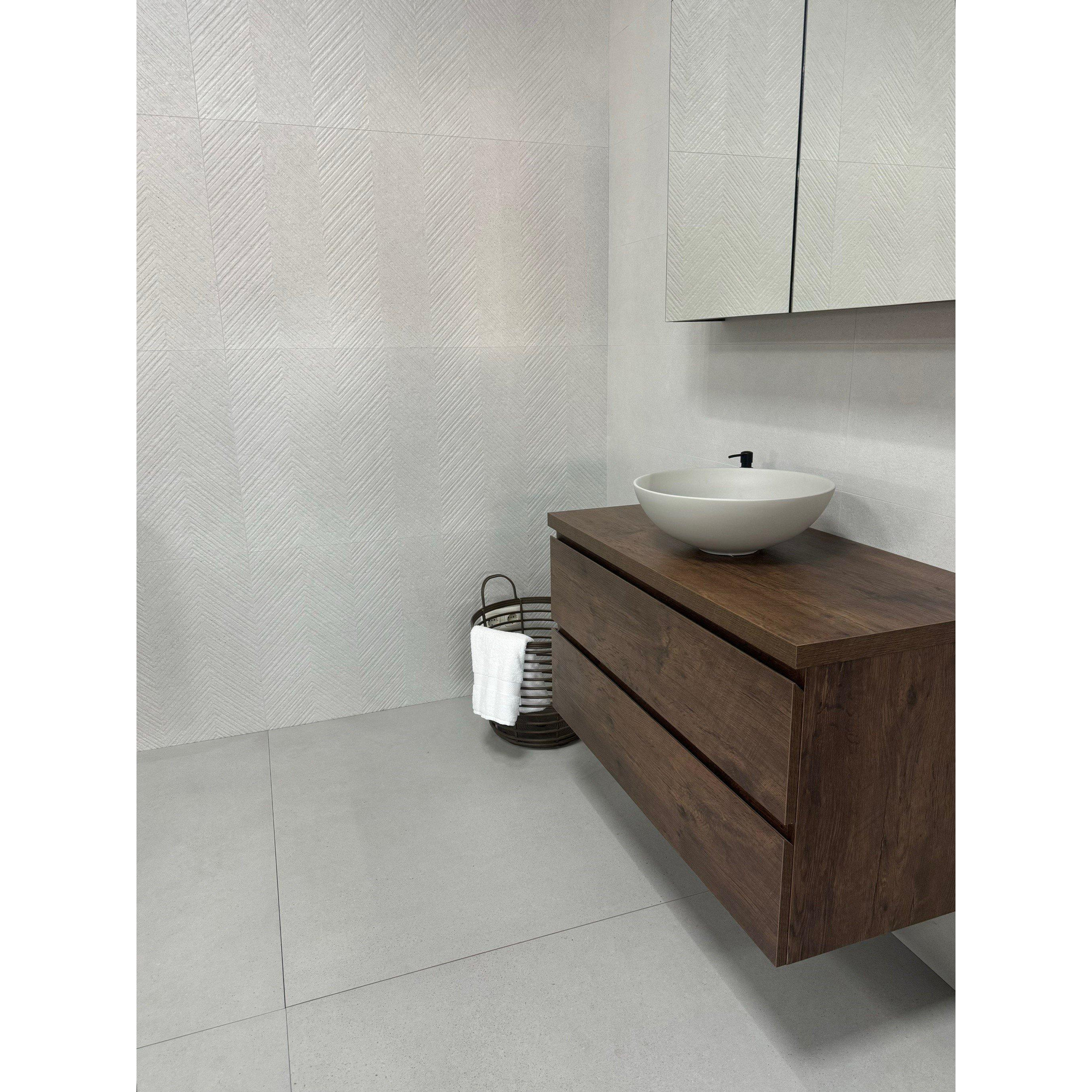 De Cifre Ceramica Borneo wandtegel is een perfect voorbeeld van modern design. Met zijn strakke lijnen, minimalistische uitstraling en betonlook in wit decor mat, past deze tegel moeiteloos in elke eigentijdse badkamer. De gerectificeerde afwerking zorgt voor een naadloze installatie en een luxe uitstraling die de ruimte transformeert tot een oase van rust en schoonheid.