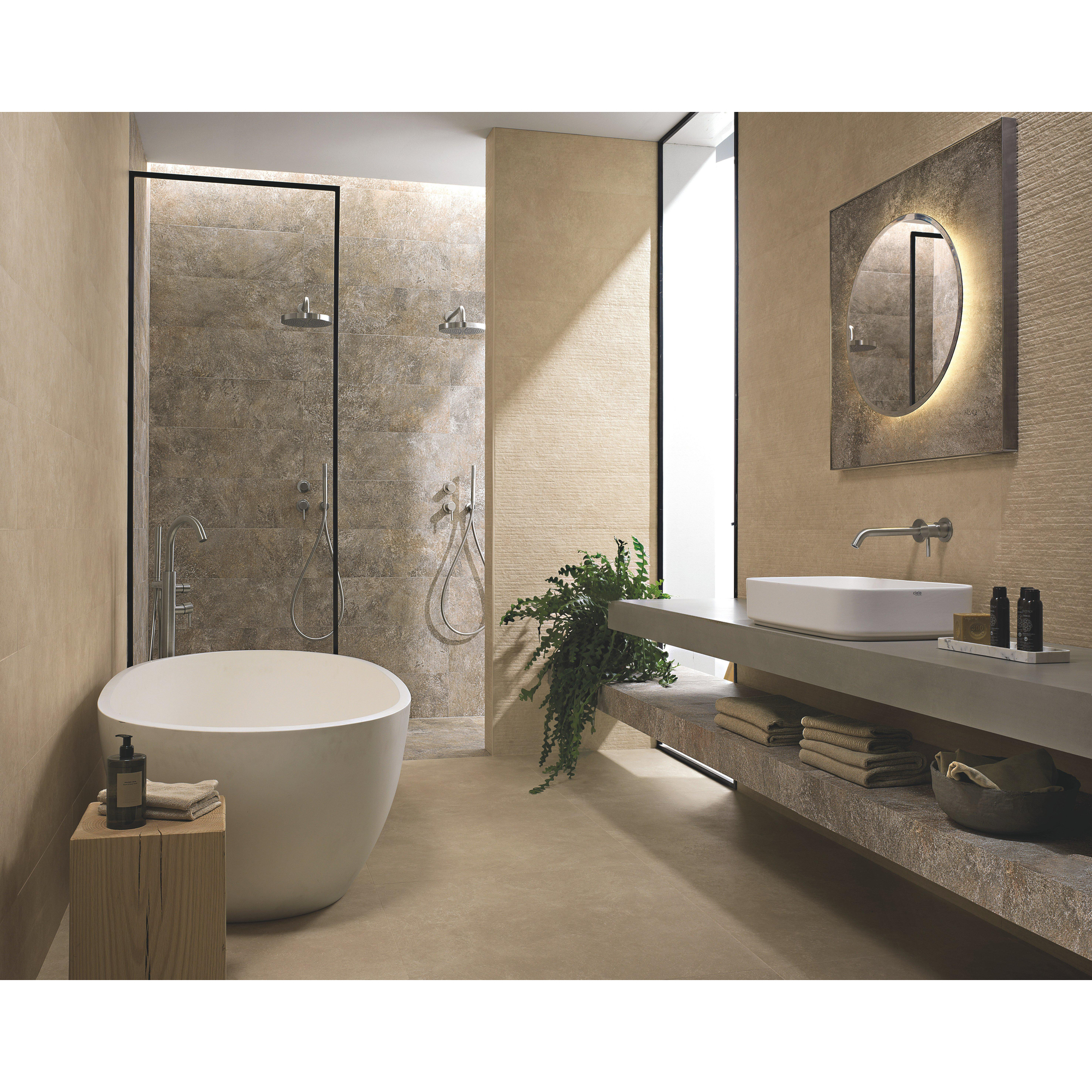 De Fap Ceramiche Nobu wandtegel onderscheidt zich door zijn stijlvolle uitstraling. De beige mat afwerking geeft de tegel een luxueuze en chique look die moeiteloos elegantie toevoegt aan elke ruimte. De natuursteen look zorgt voor een unieke textuur en diepte, waardoor de tegel een eyecatcher wordt in je interieur. Of je nu een accentwand wilt creëren of de hele ruimte wilt betegelen, deze tegel voegt direct een vleugje klasse toe.