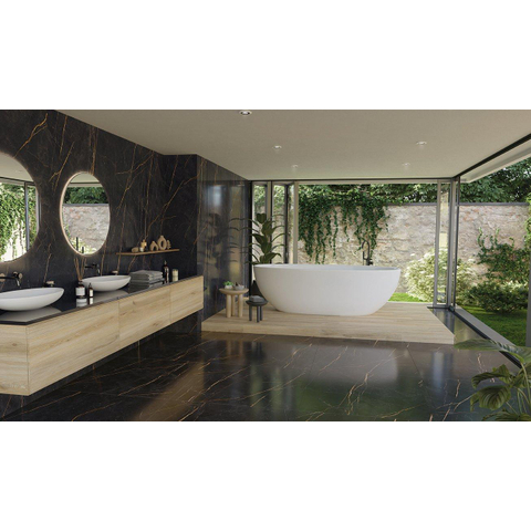 De EnergieKer Saint Laurent wand- en vloertegel in de afmeting 120x120cm straalt pure elegantie uit met zijn natuursteen look en Laurent polished afwerking in antraciet. Deze tegel is een ware eyecatcher en voegt een vleugje luxe toe aan elke badkamer of keuken. Met zijn gerectificeerde randen zorgt hij voor een strakke en moderne uitstraling, terwijl de gepolijste afwerking een glanzende touch toevoegt aan het geheel. De EnergieKer Saint Laurent tegel is niet alleen prachtig om te zien, maar ook van hoge kwaliteit en duurzaamheid, waardoor hij een uitstekende keuze is voor wie op zoek is naar stijlvolle en functionele tegels.