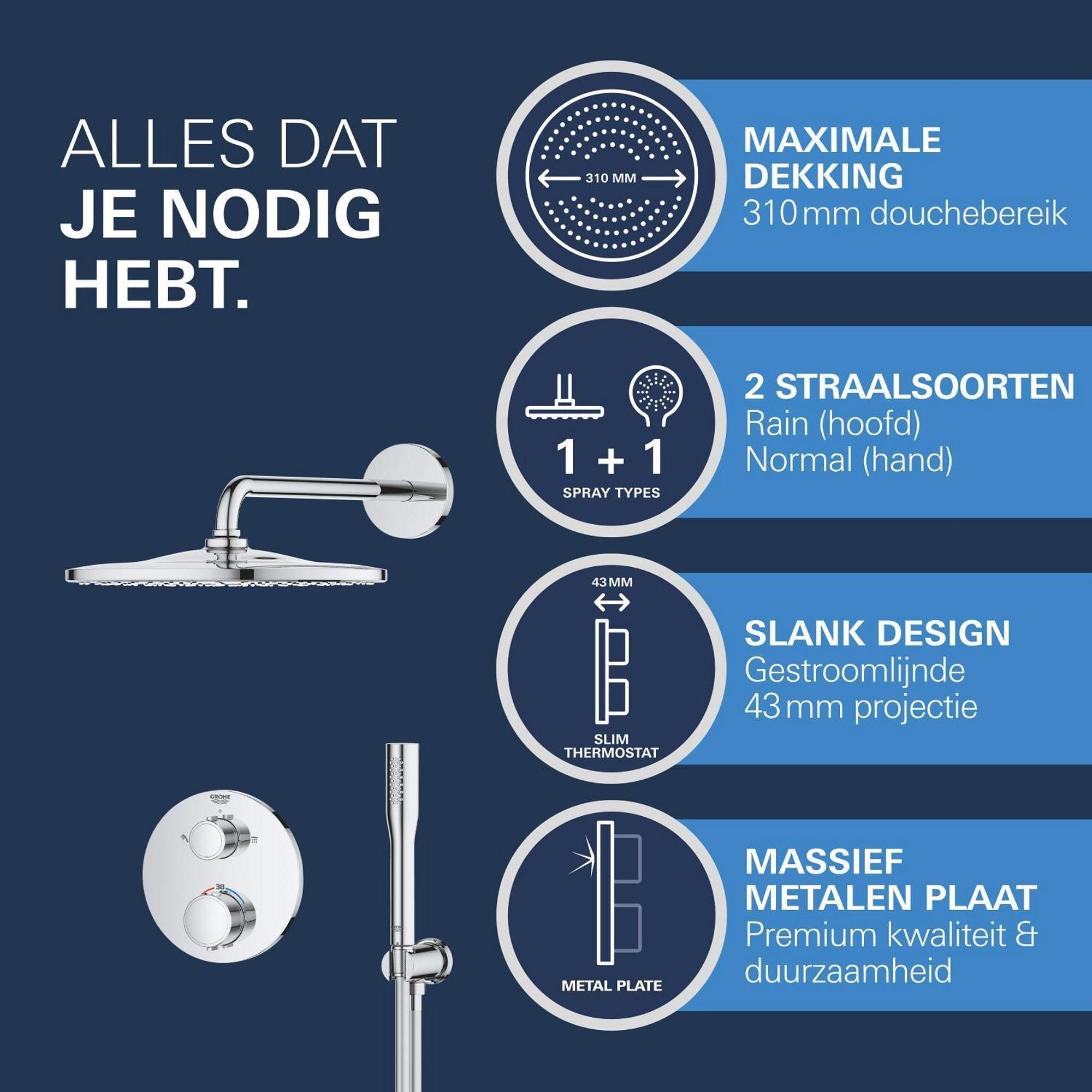 GROHE QuickFix Precision Thermostat Perfect inbouw douchesysteem met Vitalio Rain Mono 310 hoofddouche chroom