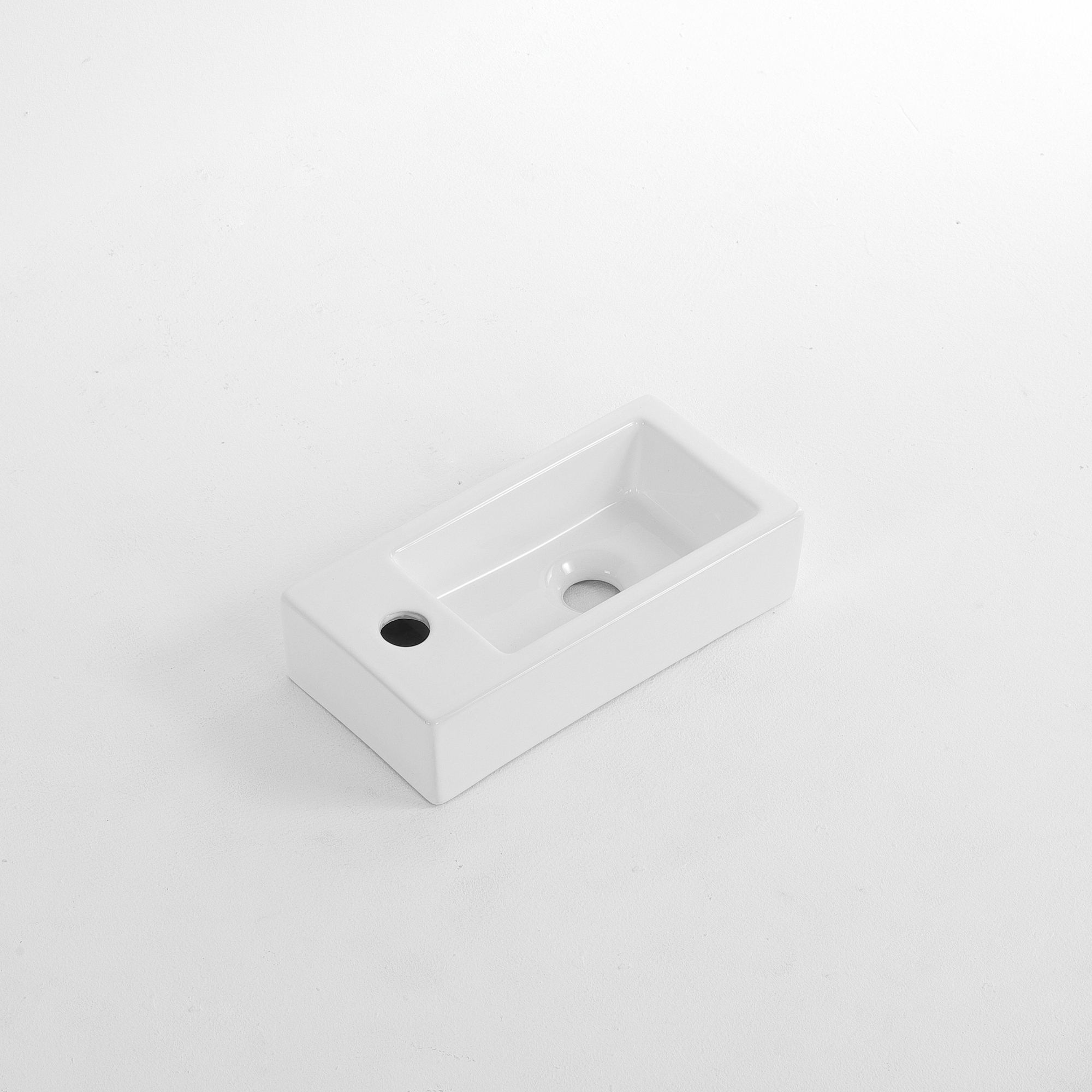 QeramiQ Fuente Fontein - 38x18.5x9cm - keramiek - kraangat links - Glans wit