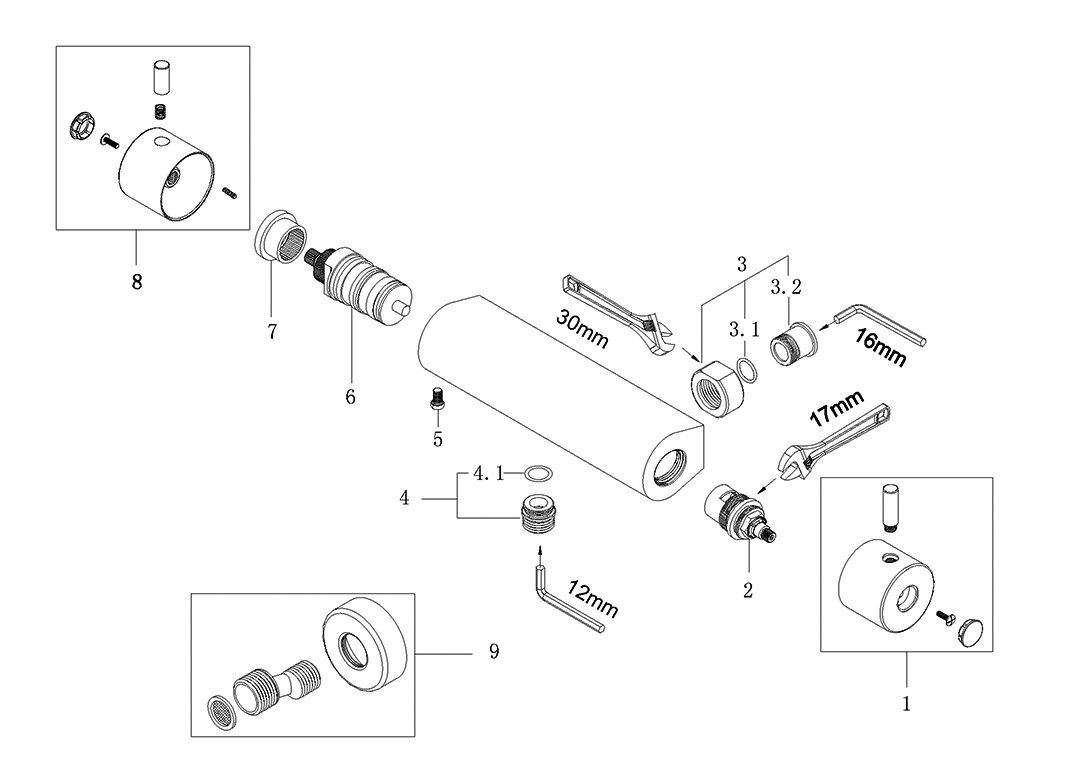 Wiesbaden Cool Touch douchethermostaat Gunmetal met glijstangset SHOWROOMMODEL