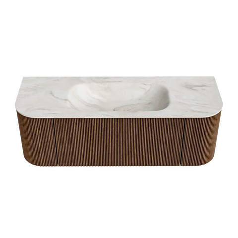 Het ultieme badmeubel dat je badkamer transformeert tot een oase van verfijning. Met zijn halfronde, verticale stroken van massief eiken, verkrijgbaar in de kleuren Oak en Walnut, straalt KURVE vakmanschap uit in elk detail. De zachte rondingen en slim ontworpen deurtjes, elk 40cm hoog, nodigen uit tot gebruik, terwijl de ruimte binnenin optimaal benut wordt dankzij de royale lade van dezelfde hoogte.
