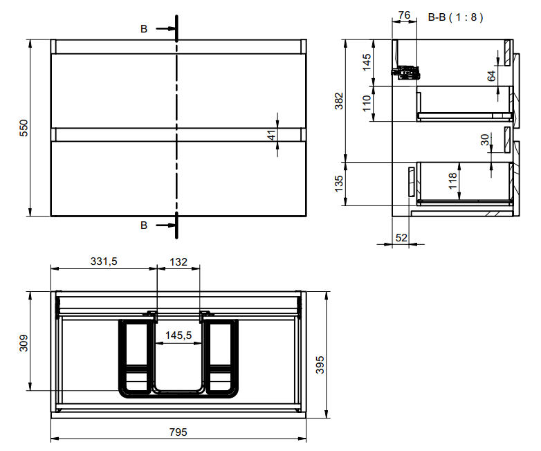 - Afmetingen: 79,5 x 37,6 x 55 cm