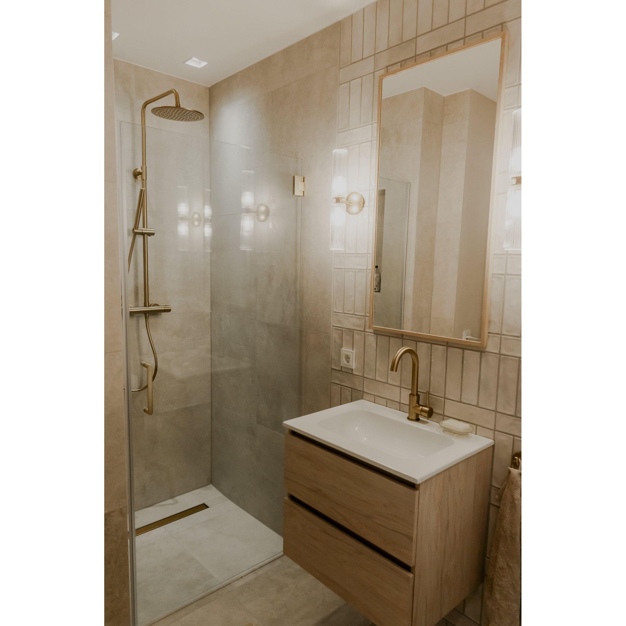 Naast zijn esthetische waarde is de Fortifura Galeria Douchedeur ook uiterst functioneel. De scharnieren en deurgreep zijn ergonomisch ontworpen voor gemakkelijk gebruik en duurzaamheid. Het helder veiligheidsglas zorgt voor een veilige en transparante barrière in je douche, terwijl het Geborsteld Messing een vleugje warmte en verfijning toevoegt aan het geheel.